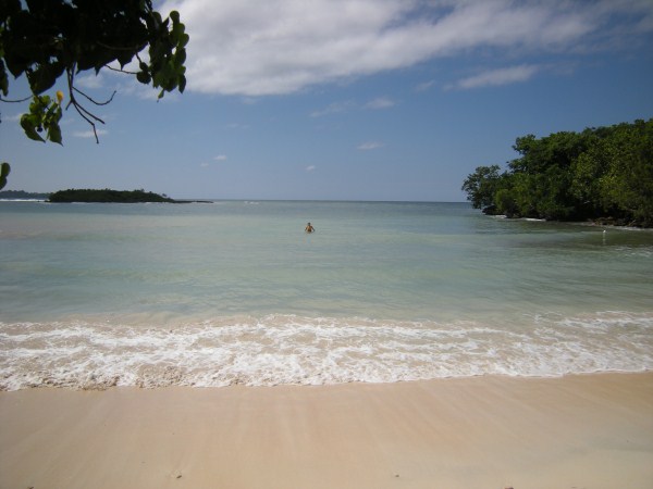 Just grab a route taxi headed for Green Island and have the driver drop you off at the entrance. They will charge and extra 100J each to drive the 100 yards to the beach from the road. When you are done just walk back to the road and hail the next route taxi headed to negril. They have basic bathroom changing facilities. The restaurant may or may not be open. The dogs will bother you to no end, whether you like it or not.