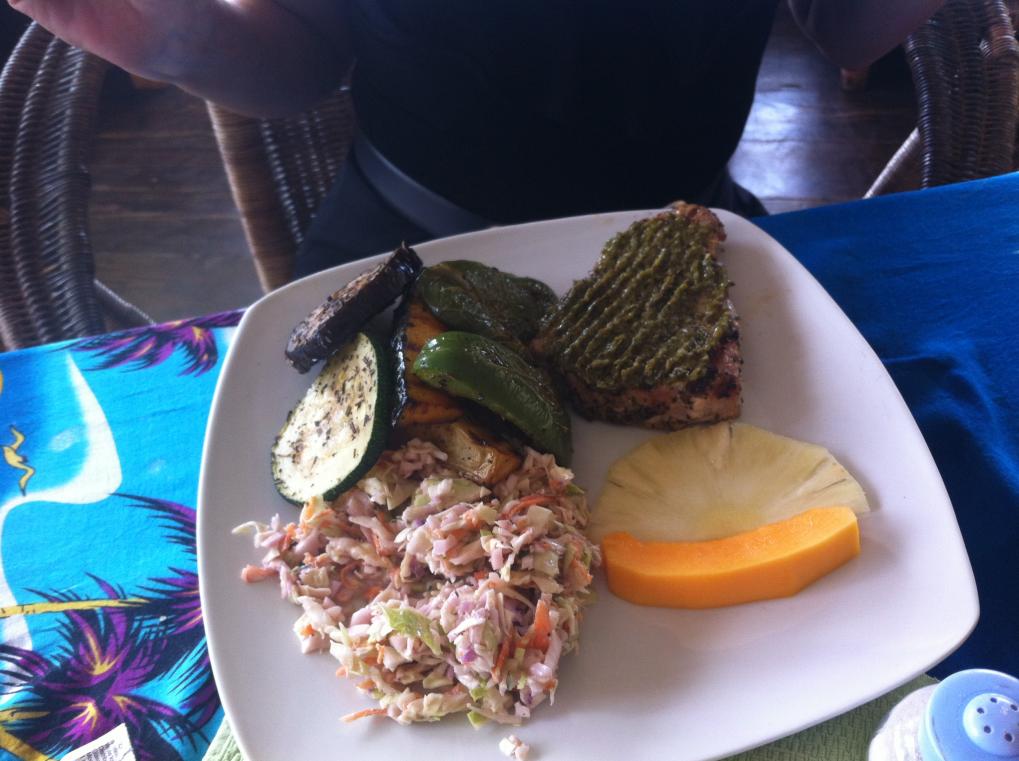 The Breakfast was very good. They would deliver to the room if preferred. We tried the in-room chef one night and it was disappointing. Lunch was pretty weak, just a choice of a couple of basic sandwiches. We enjoy the local Cliff Restaurants so this was not a problem. The fresh food at the local restaurants is hard to beat. We hate to travel and end up eating Sysco Institutional food. We have a Jamaica SIM card that made coordinating with a route taxi driver very easy.