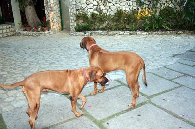 My best friends at the resort are definitely the 3 Ridgeback dogs Shuga, Tensing and puppy Beezy. We have to beagles at home Callie and Kelsie and the dogs at Tp are like our second home pets. They spend most of the day with us hanging out on the cliffs, pool or patio. I have seen where other people say they bark at night, this is not so much the case. Yes they do bark some just like all dogs but for the most part they are quite at night as Tensing sleeps under our bed, Shuga sleeps at the foot of the bed and Beezy sleeps by the door. Beezy is a little over a year old and is quite the puppy at around 70lbs. One morning I got out of bed and she hopped in with Mary, Quite funny her laying there like a person. Whenever we leave the property they are awaiting our arrival bounding to greet us.