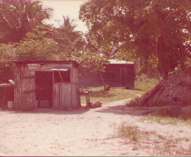 I did not smoke, but Bobby did. Sharing squares with the locals was a great way to get to know them and it was not long before we were friends with Mrs. Ruby's son Eddie and a little guy known as Presidente. Presidente also appreciated a drink of rum now and then. We loved the beach, eating curried goat at the Wharf Club, and drinking rum and cokes at the Yacht Club. When there was water pressure, we took showers under cold water only in the public outdoor shower behind Tip-Top cottages.