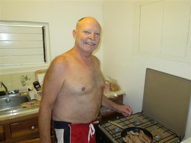 YIKES cooking bacon shirtless. Ouchy! :p You look good, not overweight