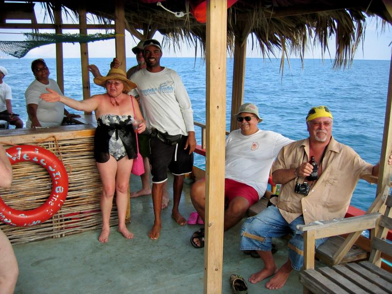 I'll be there and if we can find some reasonably priced transportation, I'd like to set up a Little Ochie jaunt. Through a staggered schedule but mostly on the 4th going forward we will have 16 people from Wisconsin in TB. At least 10 would be up for the trip. I'm frequently at Eggy's since I'm staying with Billy at Coconut Cottage just across the street from the Parchment clan with friends staying at Fairhill Villa and Sunset resort. I'm in my 60's with (you won't believe this) grey hair. Ask Eggy if Mike is around and say hi. I'm also at Dawn's most mornings for breakfast and we always do a Black River trip with Ted and Flora, a Shallow bar trip with Shabba and route taxi trips to Black River, Santa Cruz, or Junction just to get out of town a bit.That's me on the right.