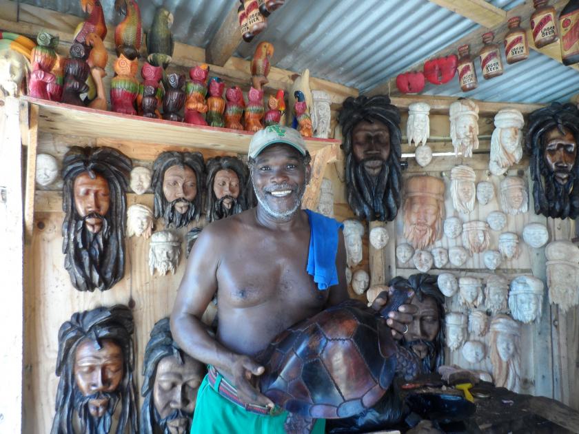 Mason is the best wood carver in Jamaica. Started a collection of his work several years ago. Planning on adding to the collection again. The turtle he is holding was perfectly carved and chose it as a gift to Cindy's daughter. The turtle was given as a housewarming gift as a sign of a very long and prosperous life. Stop and see him!!!