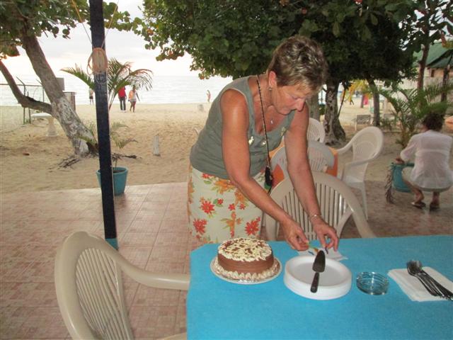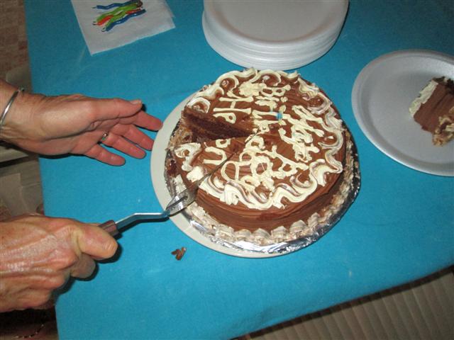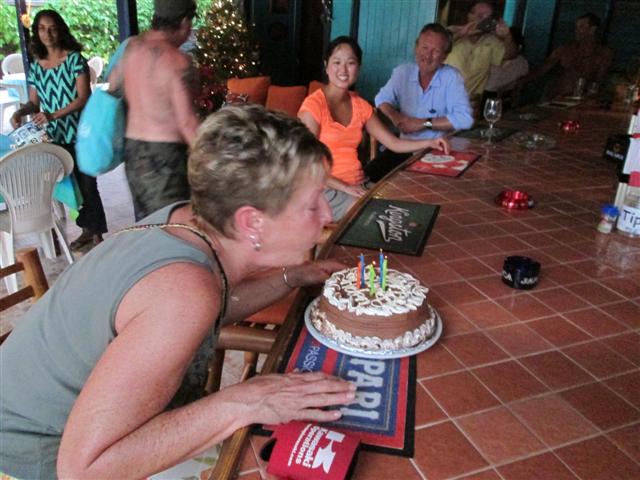 Mi Lady was surprised by the Wild Parrot, where we were living, with a birthday cake on her birthday, January 1, 2013. It was chocolate, which somehow Toral knew was Helen's favorite, and delicious.