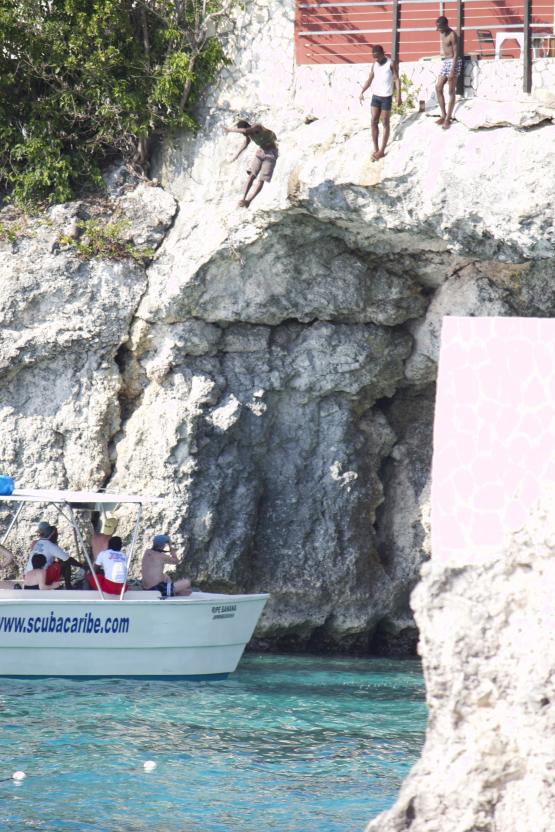 Back at the Rockhouse, we settled in on our lounge chairs with some cold Red Stripe and an extra large sub. Our afternoon entertainment was the naked Hedonism boat that anchored in the bay right in front of our villa. Let me tell you, that was one hilarious afternoon. After that, a bunch of local kids were cliff jumping for other boats that had come into our little bay.