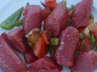 The next morning we decide we had have breakfast because it was pub crawl day. Out of curiosity I order the Chicken Sausage with my eggs.