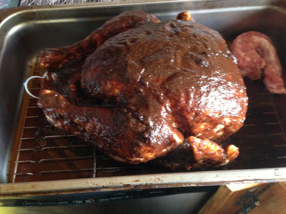 Preheat the oven to 350 degrees. Bake for 35 minutes in the oven. Remove from the oven and finish on the grill or smoker in my case.