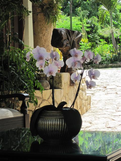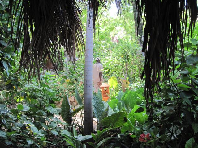 Tensing Pen is a wonderland of gardens - I was told the last hurricane did much damage but things are looking so beautiful now. I met sweet Tensing the prince of the property....his empress was taking care of the new puppies and I did not want to bother them. The first pic is a sculpture hanging near the office door and I was drawn to it - the outer parts are made from natural dried stems of some kind. So COOL.