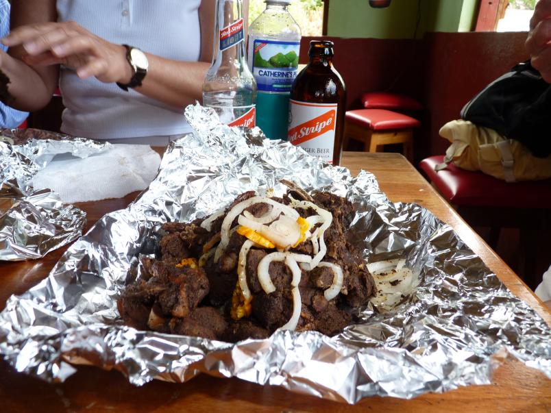 Great jerk pork and the coldest beer in Negril - right out of the freezer!