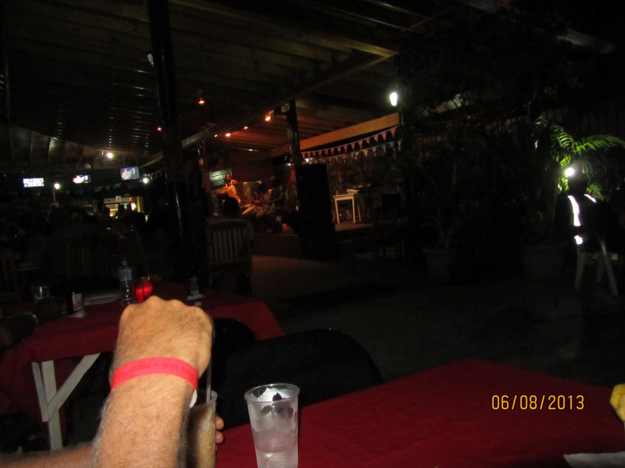 We come home eat a sandwich, swim in the pool, take a nap and head down to Seastar when the music starts. As we are walking we come across a fellow named Dilbert who has a friendly conversation with us about fruit and the lighthouse on the way to Seastar. We make it to Seastar and CaptainD I believe got up on stage and gave a speech. After the speech the drummers came on and then back to live music while enjoying the food.