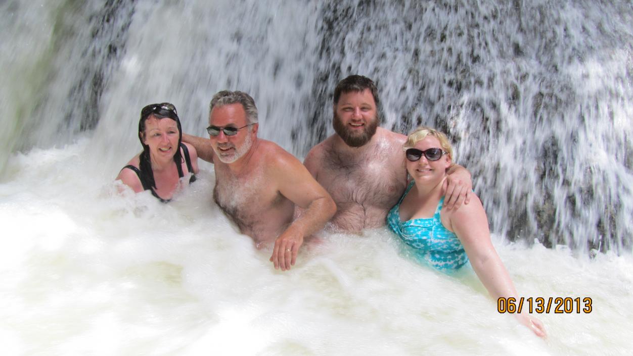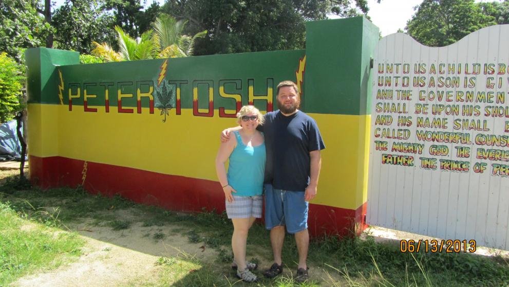 Robert from Kingsley Taxi picked us up. We started on our way towards Sav La Mar. We talked about Seaford Town and he said it would be somewhat out of the way and would need to be a tour by its self. Ended up going to Peter Tosh, YS, and Appleton. First stop is Peter Tosh. The guy sitting outside wanted $50 for us to go in and really didn't want to talk to us. Robert paid the guy 500jmd for us to take our picture. A guy came out from the gate and the two gentleman yelled at each other. We left and continued to Y.S. Falls. Y.S. Falls is one of the most beautiful places we have ever seen. Onward to Appleton Estate. Robert missed the gate and we got a big breath of liquid fertilizer haha. Turned around and headed back to the guest parking lot. Did the all you can drink rum punch at the bar before taking the tour. Pretty awesome tour for the money and knowledge. Robert became part of the family on the Appleton Tour with us. Got to try all 13 Appleton Estate rums. My mother and wife got in trouble for letting someone in our group have a small sample of rum cream. Headed back to Negril and got back about 6pm. Got a taxi and headed down to 3 dives for some sea food and jerk chicken. Wife and Mother tried the king fish for the first time and liked it. Dad went into a shrimp coma.