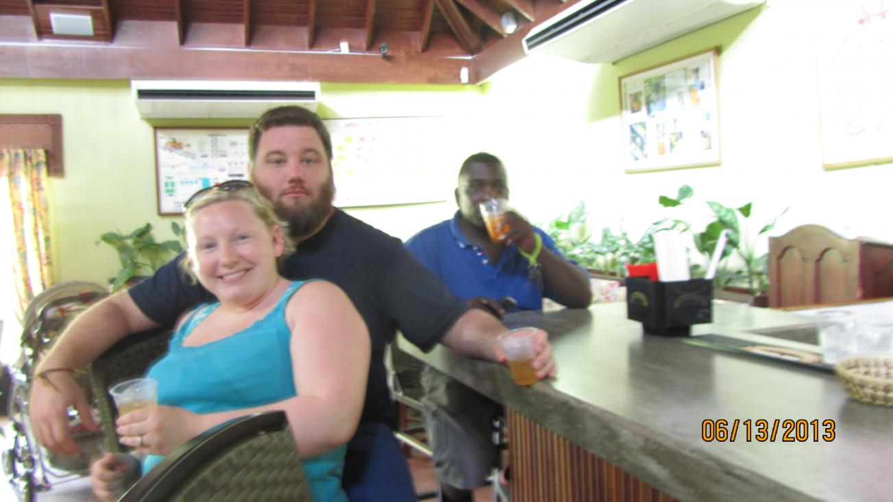 Got up and ate breakfast, swam in the pool, got out to dry off because we were doing the One Love Pub Crawl. Waited outside the gate for the 2pm pickup and waited about an hour and a half before making some phone calls to see what was up. Chatted with a few people who walked by from our past trip to Negril and caught up. Gave up on the bus and walked down to Ahhh Bees for the best hamburgers I've ever had.