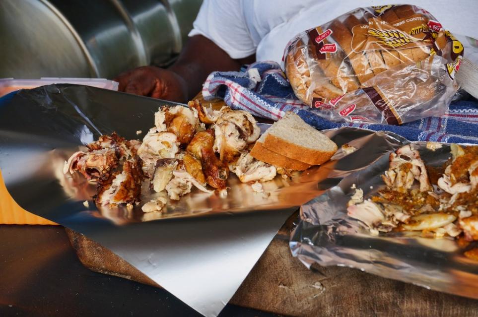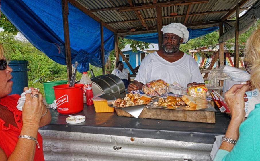 Rocky of Rocky's Tours & Taxi was there to greet us. Over the years Rocky has become a good friend of ours taking us on a number of great adventures. It's always good to see him. We get loaded up and we're off to Negril with a cold Red Stripe in hand. Along the way we make a stop at Bigga's for a snack. We have tried to stop Bigga's for several years, but either we were running late or he was closed so this is our first oppotunity to sample his chicken and pork. We ordered a half chicken and Rocky had some seapuss soup and jerk pork. It was all good as were the cold Red Stripes.
