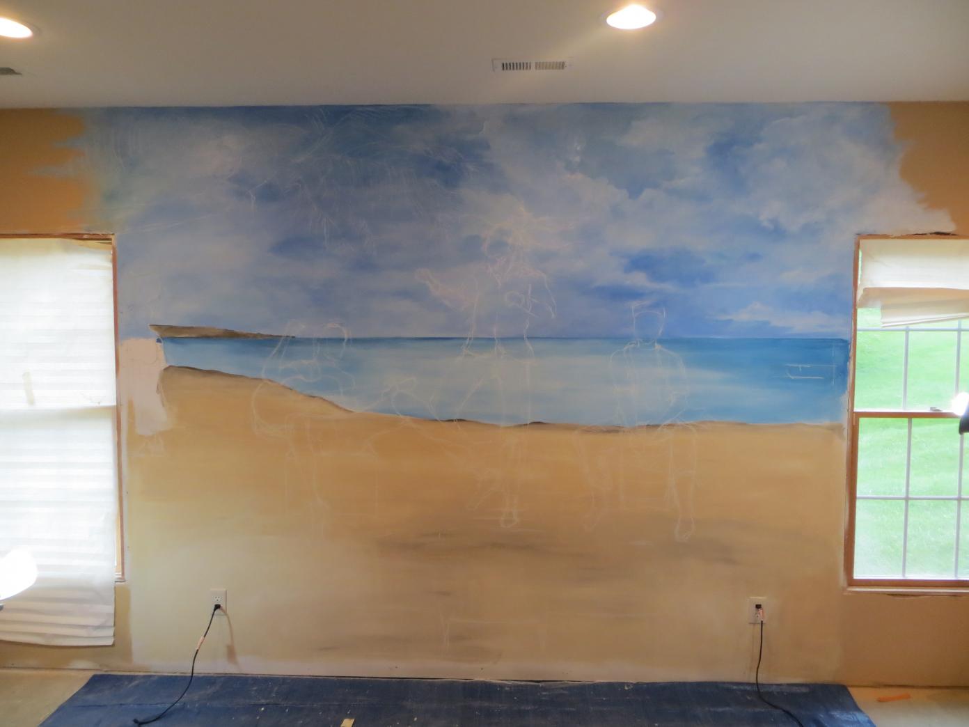 I'll post some more detailed shots of the finished mural along with another part of our basement project later.