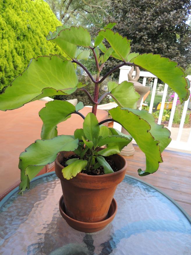 This is a picture of a Medicine Hat Plant. Notice the little round 'tings' on the outer part of the leaves - these are the plants 'babie's and when they drop off into the soil they produce more plants :) I heard this plant came from Mexico originally..... but don't know for sure. It sure does grow everywhere in Jamaica!