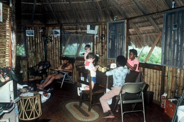 Here's Mommy, Linston, Ethan and Graham playing dominoes at the yard in 1980 or so.