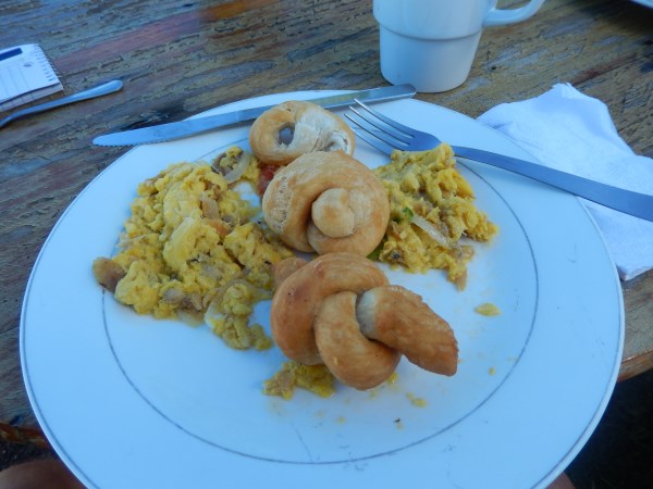 Teddy ran out of calaloo, so he gave us double saltfish and ackee