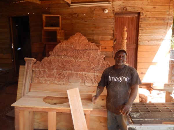 Walking toward Ragabones we met some furniture makers who invited us in to see some of their work. Impressive carving on this bed set.