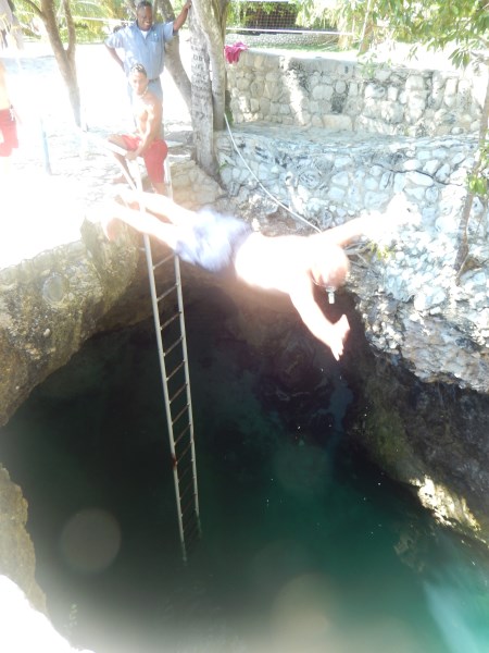BJ a local doing a one and a half at Blue Hole