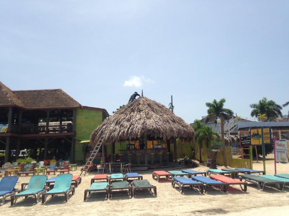 The second was at Beaches. (I think) Now, this one was a head scratcher! We watched these guys for a little while. Instead of the guy doing the painting climbing up and down the ladder to move it, he just stayed at the top and hung on. Then the guy on the bottom would then grab the rope and pull the top of the ladder over about ten feet. (YES, with the guy still at the top!) The two guys at the base of the ladder would then shimmy the bottom of the ladder over until it was straight again and the guy would paint away until he had to be moved again. I wanted to get a video of this interesting technique, but the beach police in the picture shooed us away when they saw me taking pictures. Not exactly an OSHA approved method back home. I dig that Jamaican ingenuity.