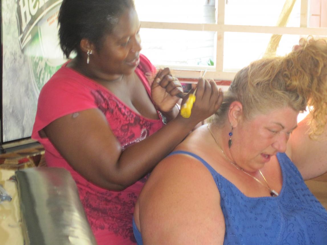 B wasn’t feeling up the trip so it was just me DK and Kevin who made our way down. As always we got the front row seating! I do love that little spot on the side of the road. We drank many beers and shared many laughs. Colette put a few braids in DK’s hair and Kevin ended up bartending! LOL! The look on the locals faces when they came in was funny as hell seeing a 6’2 white guy behind the bar! I think he even managed a few tips lol!