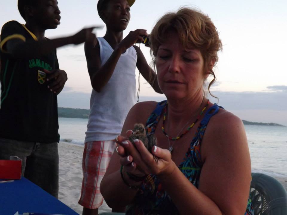 as we were finishing up, there 2 boys were walking by and had something in a box...Janet called them over to see, it was a couple of baby birds...they said they had rescued them and were gonna take them home to try and save them...