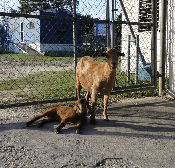 The momma goat and kid.