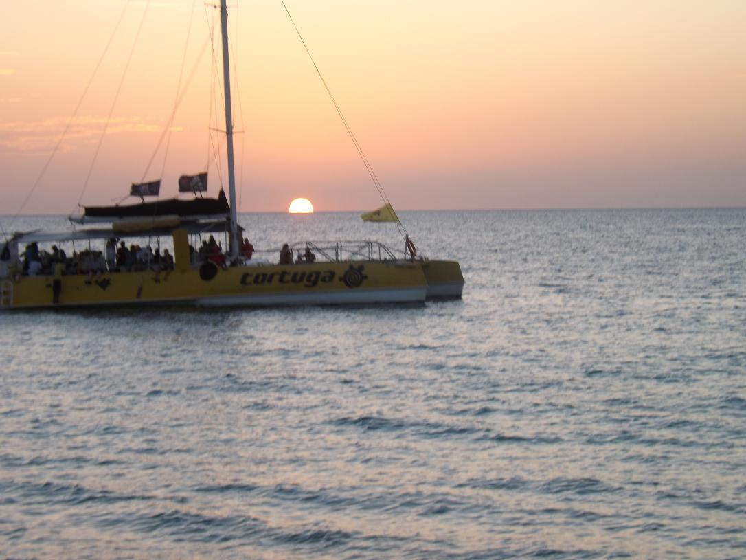 a view of the boat by our place, a view of our chairs and umbrella, and from the bar as I have a daquari...