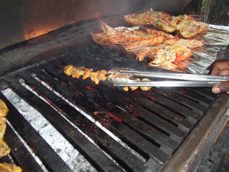 3 dives has jerk chicken, shrimp, and lobster on the menu....