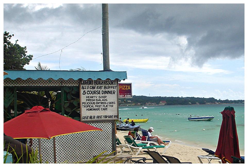 After horsebackriding we grabbed a Juicy Patti and got dropped off at Legends. Spent the afternoon on the beach. Did some strolling and some shopping. Went back to find the old rasta with the carved birds. He and the other nearby vendors praised me for keeping my promise of coming back. You can tell that this means a great deal to them. I respect that.
