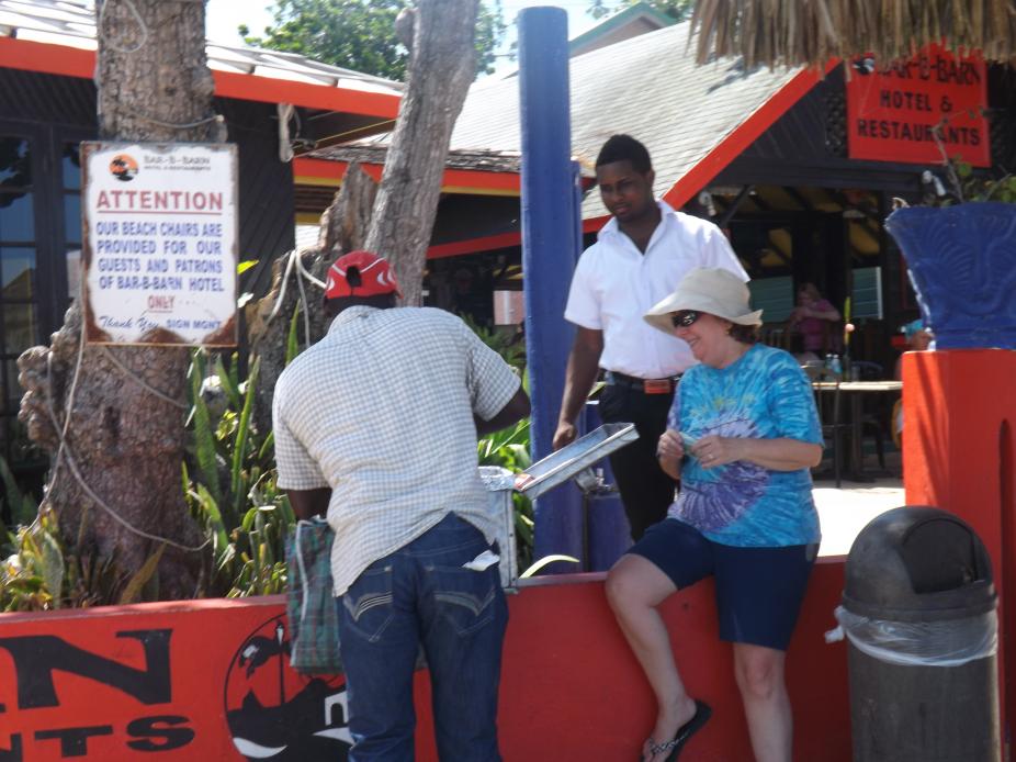 I had seen Dean many times on the beach, but had never tried his pork...he gave me a sample....very good...bought some to eat on the trip back to Mobay...