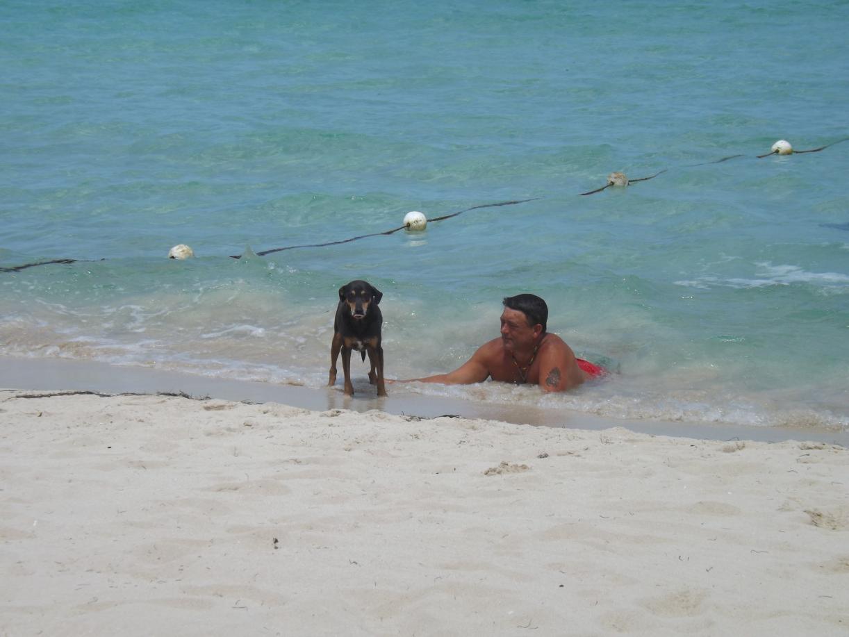 we have all of our packing done except for the last minute stuff when we change into our airport clothes...we have a little dog food left and a few rawhides...some of the dogs would not eat the rawhides, but two of the puppys did, and i knew they stayed down near the old t-water, so I took the treats to them...I saw a little boy at Jam Rock and I am recognized because of my many walks on the beach, and I give dad the last bit of candy i had, and the last color book for the little boy...