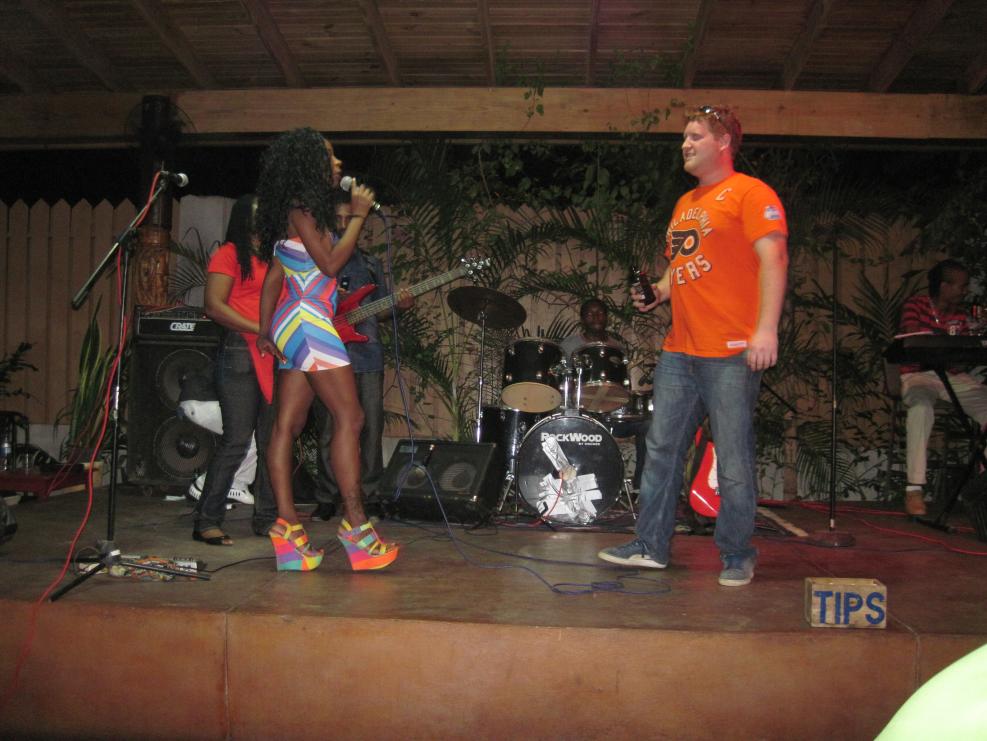 We went for lunch at Travellers and of course ordered something that wasn't on the menu. Something we learned a long time ago is that if you don't see it on the menu ask....cause the cooks are likely making it for themselves. So we had Jerk Chicken with Rice and Peas. It was SOOOOOO GOOOOOOOOODDDD!!!!!