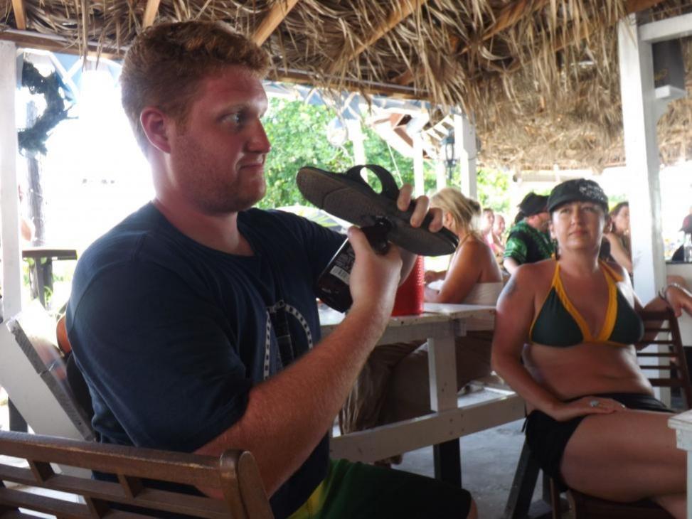 The Flipmeister with his flip flop bottle opener.
