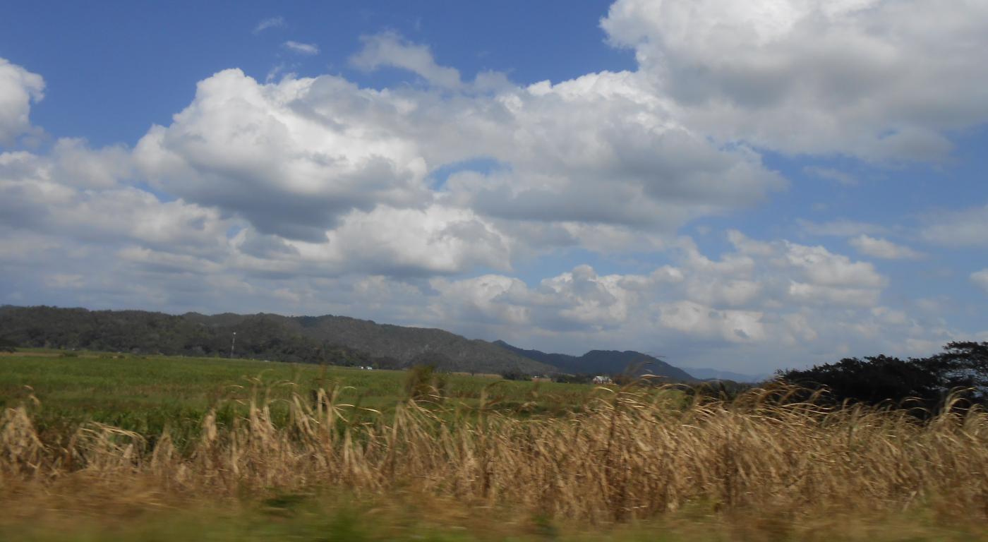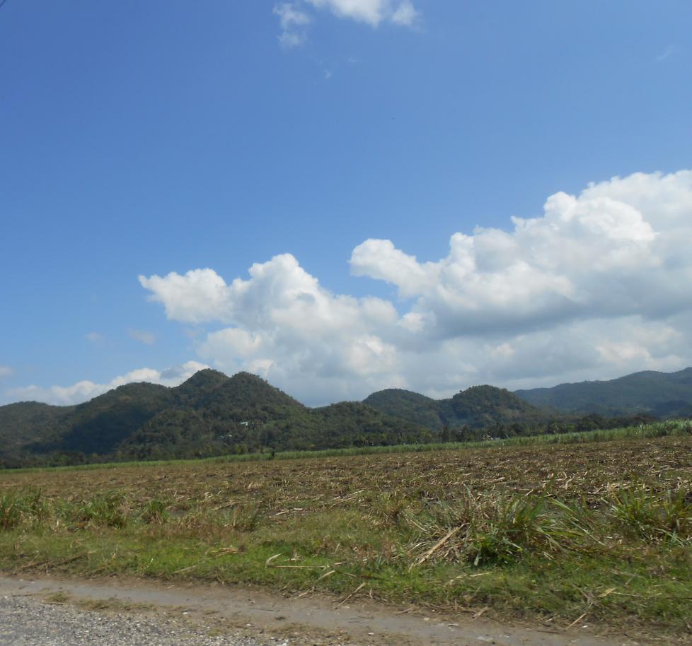 We got up and made some omelettes with fresh veggies and a side of fruit and toast and hired a driver to take us to Roaring River for $25. It really helped having Mr. T with us because he was a pro at negotiating some great driver fees the entire trip. The driver that we hired could DRIVE. And fast. He had some major skill. Only draw back was we were listening to some kind of talk radio that came through like static on his speakers. It was annoying for 2 hours. Here's some photo's I took from the car on the way there. Driver said that this is where they grow the sugar cane for the rum factories and that Chinese companies own all to processing plants.