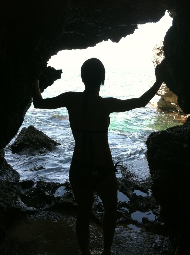 We grab our face masks, drop our bag at the bar and head down the beach cave steps. They are slippery and we take our time. Sweetie Pie is amazed to walk out a hole in the cliffs onto a coral shell beach and out into the sea. I think of what a fish my boy was in the water here, it’s hard not to be a little sad about that. We swim in the cove for a while then head over to the island platform where we catch some sun. Bohemian couple come out for a swim too and we exchange pleasantries, even Sweetie Pie! A few dives off the island rock and we head back in to the beach cave. I tell Sweetie Pie about my daughter getting caught by a wave one day on her way out and getting pushed up into the rocky cliff, fortunately with nothing more than a couple of scratches to show for it. “Be careful,” I say, “ I don’t want to hear…” “I know, I know!” says Sweetie Pie. We safely head up the stairs and grab a couple of drinks to wet our whistles while we dry off.