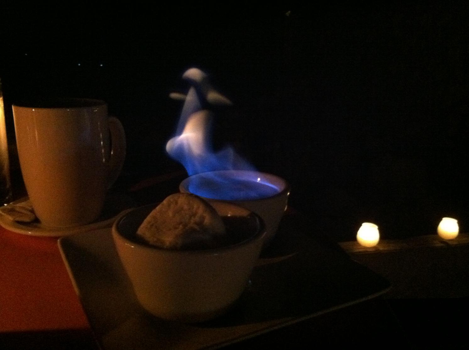 The night swirls around us as we create another chapter in our own mythology. This night is mystical and magical. A night where no others may tread, ours and ours alone. We have dessert and coffee, Sweetie Pie orders the bananas flambé and we have fun watching the sauce caramelize under the dancing flames. I enjoy my dessert, it is delicious, but I have a giant “DOH!” moment when I realize bananas flambé is bananas foster with rum instead of bourbon. My favorite dessert. Sweetie Pie feeds me enough to leave me just short of satisfied. She’s such a tease. We follow with coffee and aperitifs. We linger, not wanting this night to end.