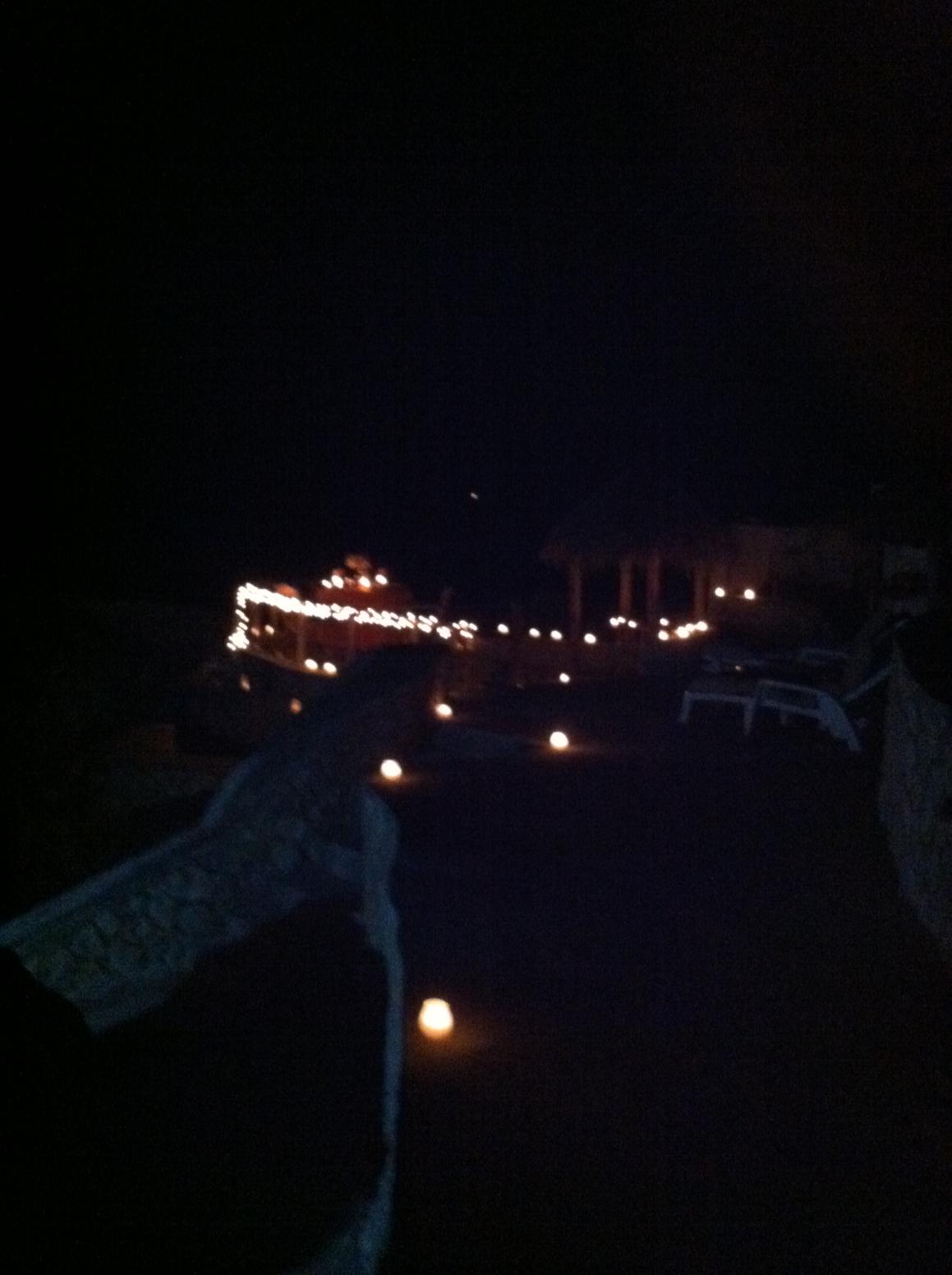 With no small effort we decide to head out. We have spent close to five hours winding our way through cocktails, a five course meal, coffee and aperitifs. We snap a picture of the candlelit terrace in the dark and say our goodbyes to Karen.