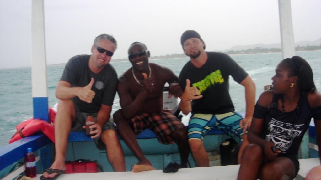 Rewind a bit back to Thursday as this was Gonjon's bday. This day would turn out to be a killer day and a lot of details are a little sketchy as we partied like it might be his last. I had set up with Vincent that morning to take us on a sunset cruise along the West End so we could take in the sights from the water side. As the time grew closer it appeared that the rain might just wash everything out and cancel our trip. But right about the time he was to pick us up the clouds opened up and allowed some sunshine in. We loaded up and I asked Vincent if he could just drop us off at Canoe instead. Things were a little rocky and I wanted to make sure we could catch the webcast with the steel drums.