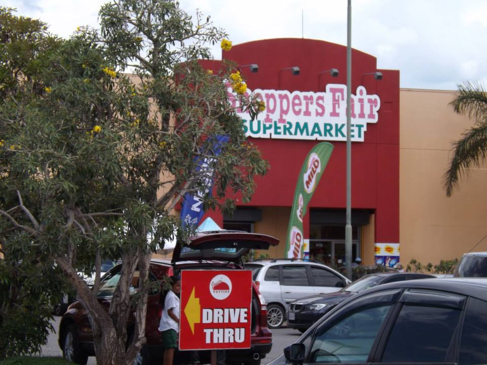 juicy patty has a drive through, chinese rest. next door, and the shopper fair supermarket...