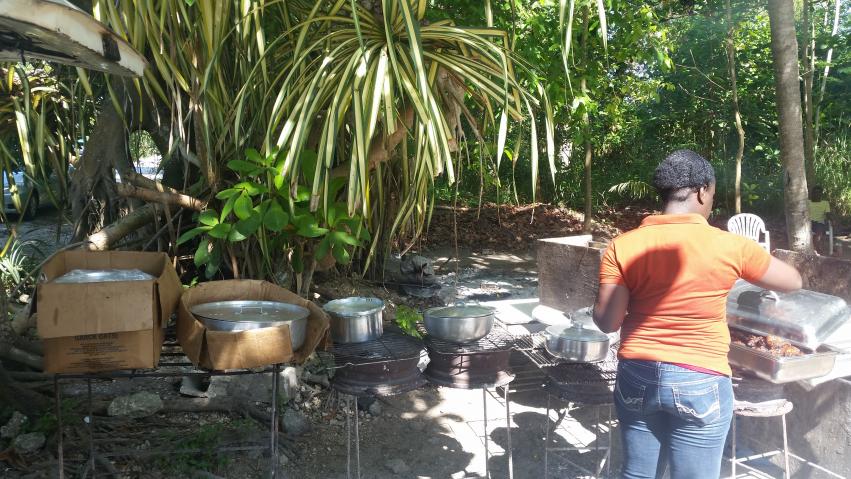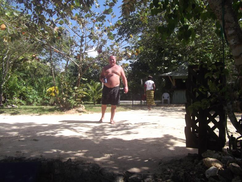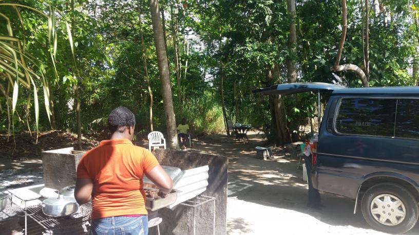 because i was the only one who ate breakfast, we stopped by a cook shop, which is set up in the trees across from boardwalk/point village...have eaten here before on the way back to the airport a few trips back....babyface got out and was looking at what was being cooked...it was HERE or all places that he was asked to put a shirt on...in the middle of a outdoor grove...lol...been walking around for almost two weeks, and here in the outdoor cooking area....lol...he came back to the car, got in and told us...I HAD to get out and take a picture....lol....shane was the only one who got a box....lol