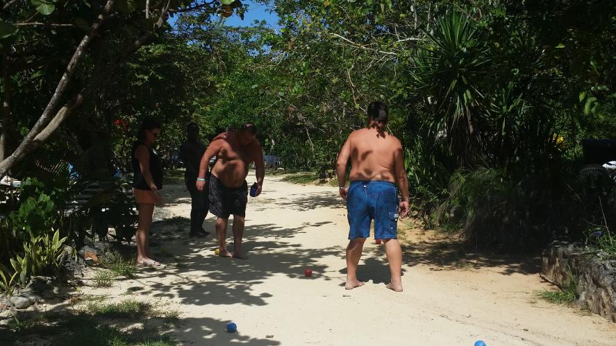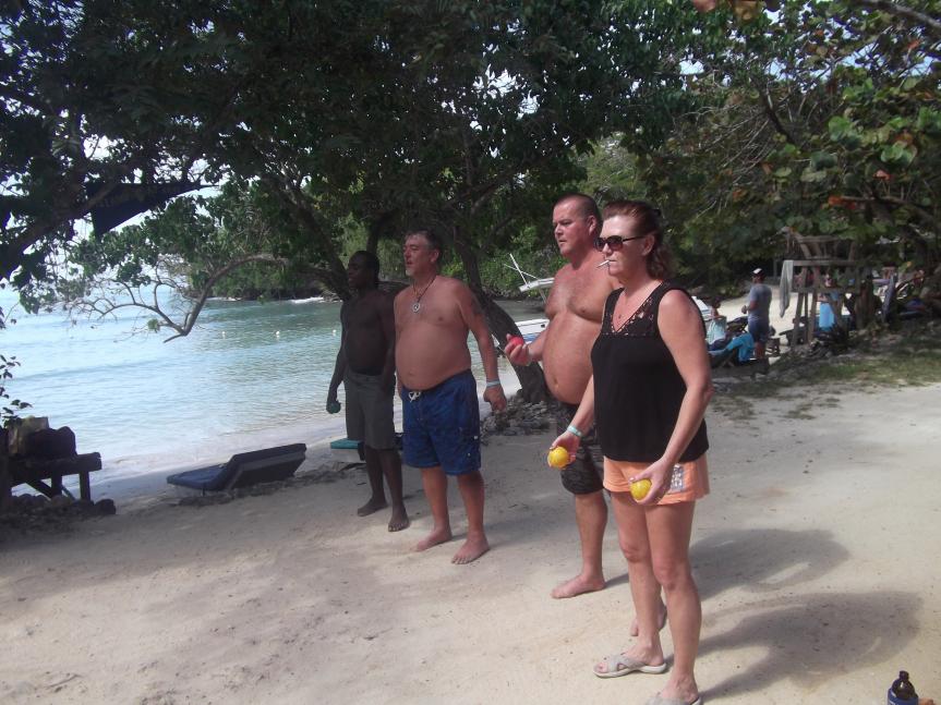 we went on to Rhodes Hall Plantation...the guard at the gate called someone...Janet and I had been here one time in 2010 for a pizza party/web cast...they have a cool infinity pool we used then....the guard said the grounds were closed and the pool was only for guests...didnt seem like they wanted our business today..so on to Half Moon Bay...we played Bocce Ball...It was really a fun time...our buddy Shane is like a big kid, and loves to play games...