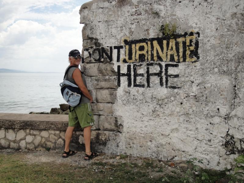 What a rain we had last night – wow! But today was hot and clear. About mid-morning I found Fabs walking the beach in front of CoCo. He was just returning from walking Alabama back to Tree House. We decided to go into town to the Cambio (to re-stock) and pick up a few things at Value Master. We flagged a taxi at the White Sands gate and climbed in. The driver asked us where we were from.