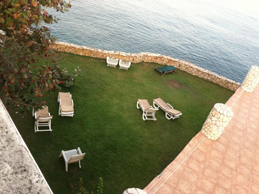 If I’m not down here when you’re done, I’ll be up with my friend,” says Chris. “Yah, mon,” I say, knowing exactly where he’ll be. We meet a guide in the first building we go to, he says to go pay over at the bar and he’ll meet us there. As we walk over a few of the guides and vendors mill around us. I’m telling Sweetie Pie a few of the things I know about the place from reports here. There’s a discussion in the bar in Patois about who is going to be our guide. One guy’s not sure he wants to take us. He already knows the place, he’s gonna want to be the guide, he’s gonna tell her everything, ain’t gonna be nothing for me. When our guide comes and introduces himself I’m determined to keep my mouth shut and only follow his lead unless I have a question. This is not particularly natural or easy for me but I think I do an OK job.