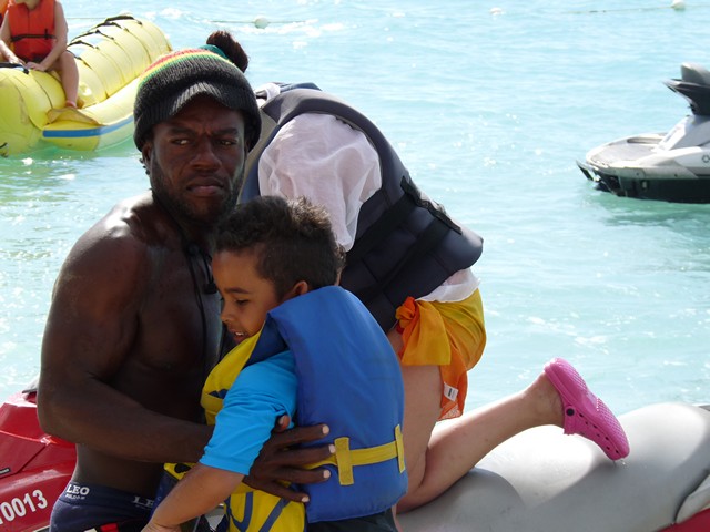 then he took me and my son but i said let me check the life jacket let me tighten it he cant swim but VROOOOOOOOOOM we were off holy crap holy crap SLOW DOWN slowww down OMG OMG MY SON WAS SCREAMING LAUGHING IN HYSTERICS SAYING GO FASTER I WAS SCREAMING slowwwwwww down please he was jumping over waves i had not tightened the jacket my son cant swim I think it was tight enough anyway but I was PETRIFIED my fingernails were almost inside the guys bellybutton ripping it apart I said go back go back omggg