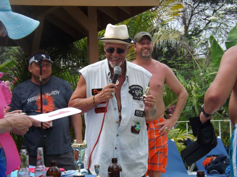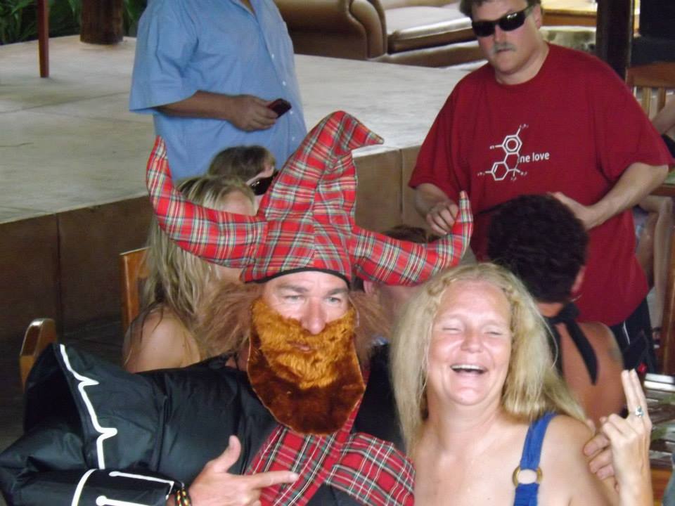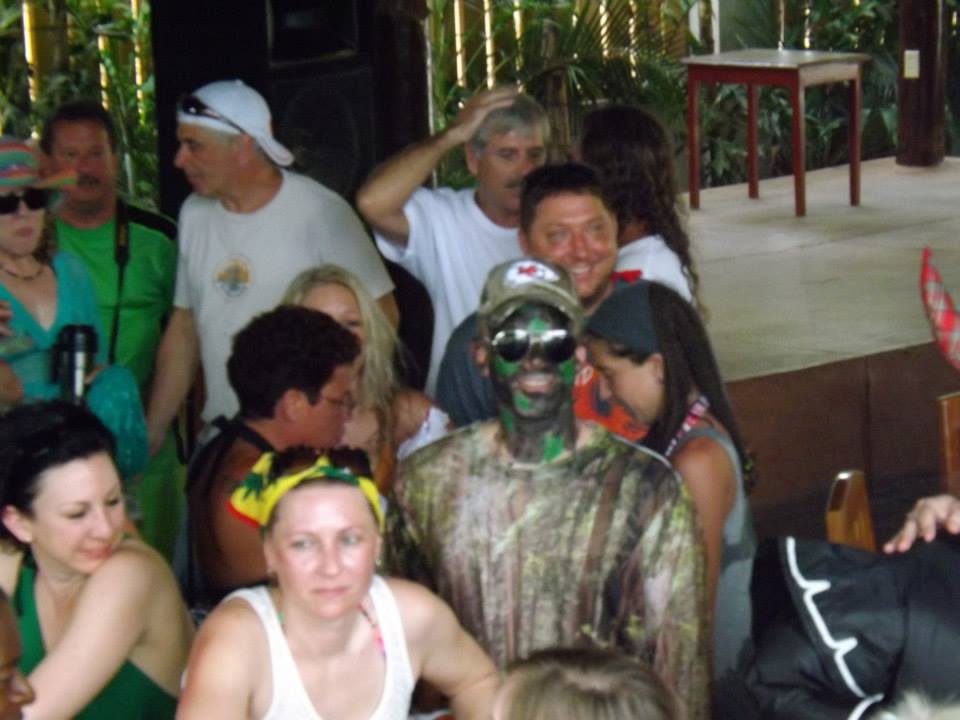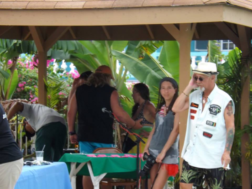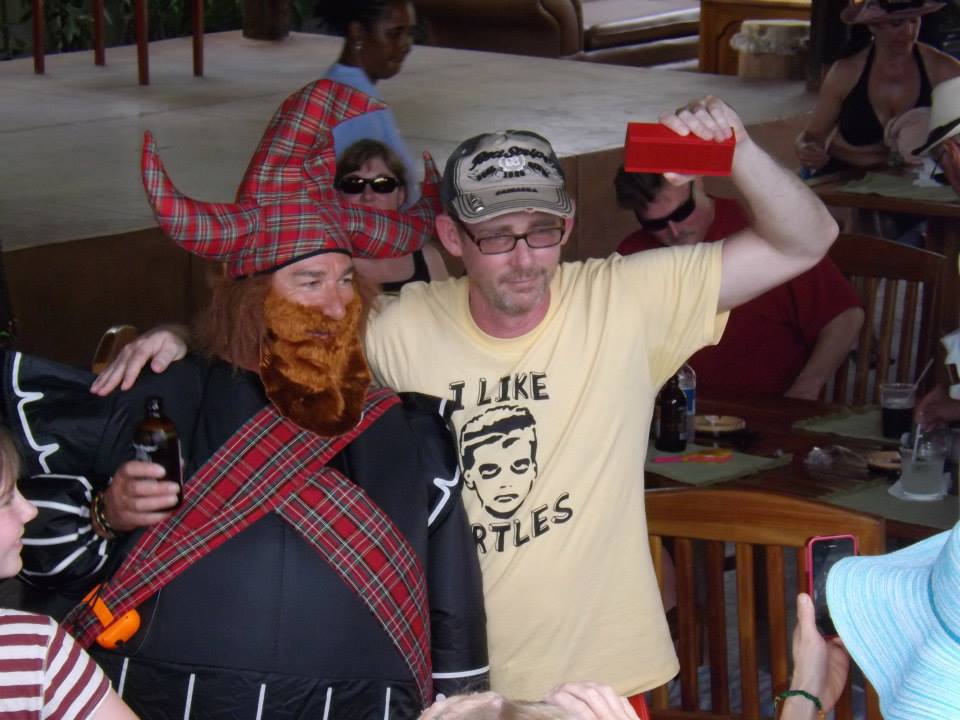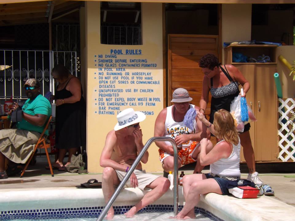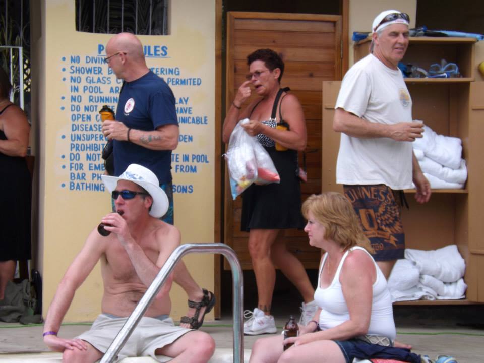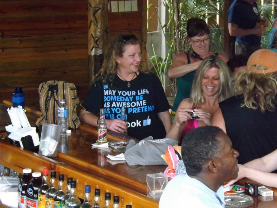 when things started to clear out, and the rain let up some, we walked down the lane to AAAHHHBee's...we met rina and larry and rick and carolyn there....had a burger and it was awesome....this was the other peoples 4th trip so it couldn't be too bad...well it was awesome....best burger on the island...after dinner, we sat around, had a few beers and laughs...one of the locals guys came in...he knew us all...well after a few brags and boasts, it leads to a special brownie taste off....one guy breaks his up and the other guys slices his up....we had a taste test...well, one brownie was clearly better tasting, moist, more like a brownie...the other was more like cake, and u could taste teh gritty of the ingrediant in it...but it was very entertaining indeed...so was the rest of the night...hehehe....most at the table had very small pieces forced on them, while me and another finished it all....great way to end a great day...when we leave rick and carolyn were talking to someone about going on a tour tomorrow...but we had to go...