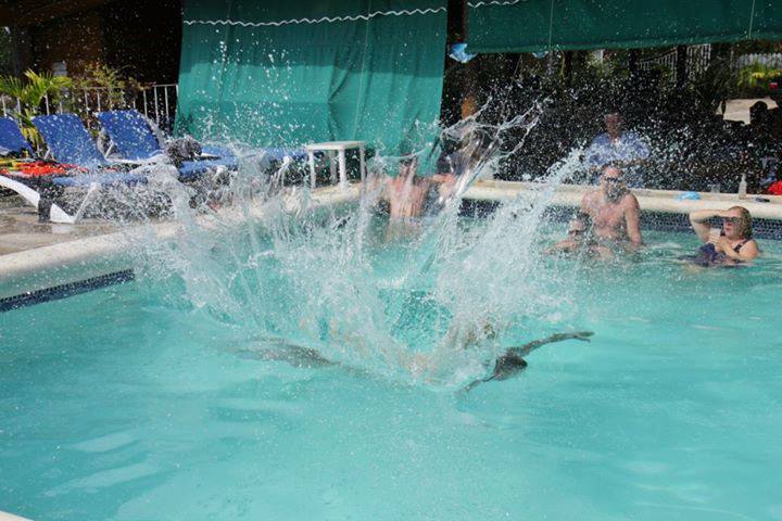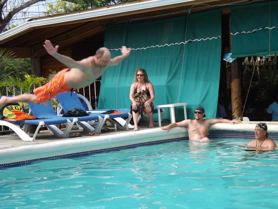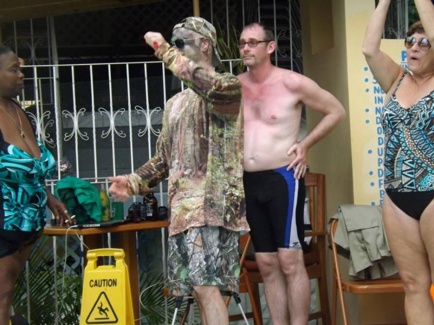 spotty catz---his suit filled with water and it was a sight watching him exit..