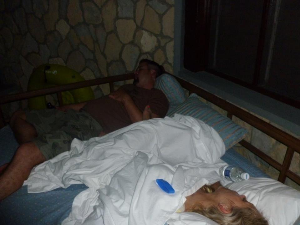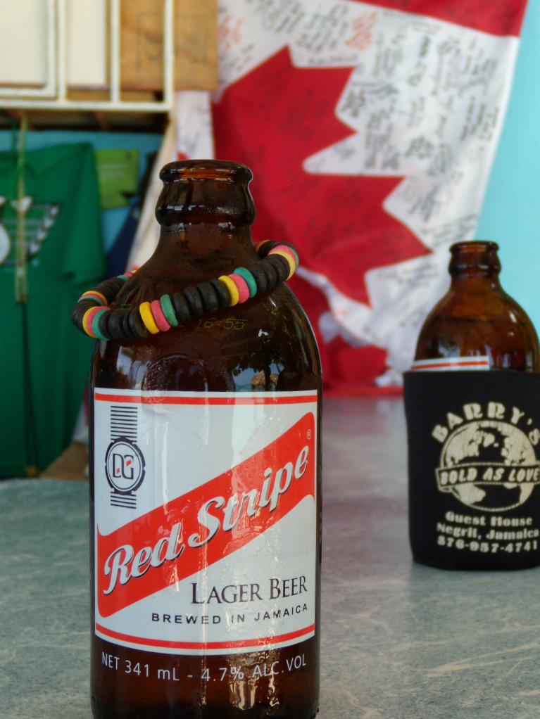 This is my fav... Sandie couldn't wake Booger up or move him inside....so he woke up with a foot to the face. ANyways, I know this is a redstripe pic thread but if you look real closely you can see that the dude still has a firm grip on his stripe! lololol Sandie was sweet replaced my redstripe with a bottle of water and mosquito bracelet. Good lookin out lol
