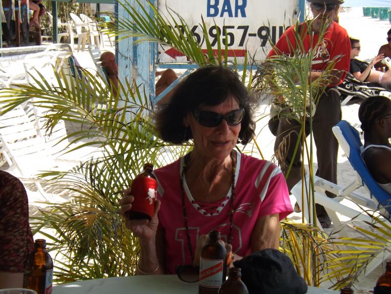 we leave corner bar and Janet and I get dropped off at Bourbon Beach...sorta dead tonight but we hang with our friends for awhile and walk back to negril palms...