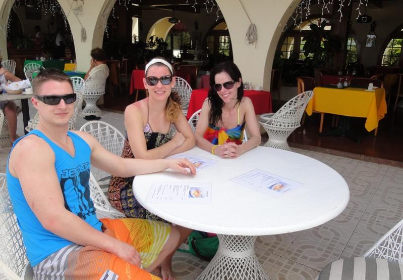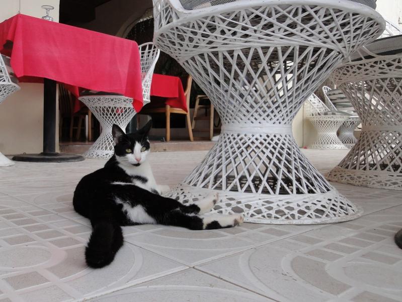 Also, we usually have breakfast at Charela; it’s close to White Sands and good. And they have a very cool cat named Lucy. Here’s ‘the kids’ and Lucy.